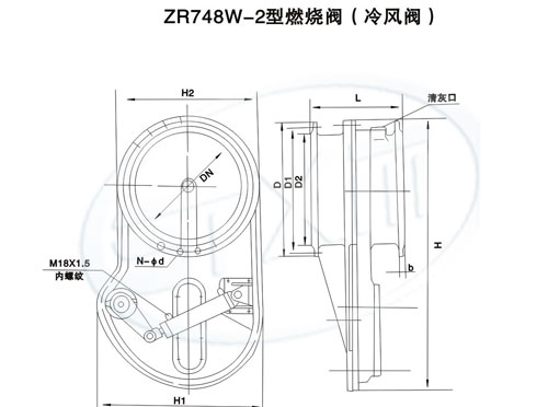 ZR748W-2型燃烧阀(冷风阀),采用单闸板式结构,用液动装置通过连杆系统驱动闸板实现启闭。