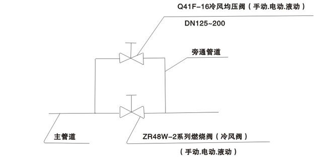 本阀做冷风阀使用时应在阀门两侧加旁通管路以利于均压操作。