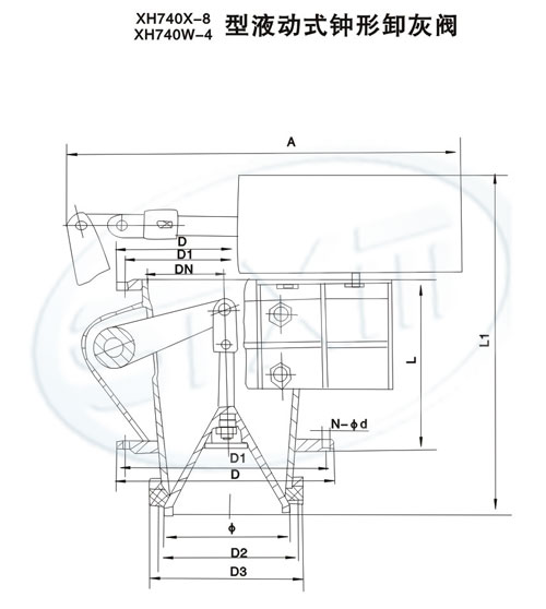 XH740X-8型、XH740W-4型液动式钟形卸灰阀用液动装置通过机械执行机构驱动阀塞完成启闭动作。适用于自动控制和远距离操作的场合。XH740X-8型密封部位为橡胶软密封,本阀应用于冶炼高炉喷煤系统煤粉输送控制。XH740W-4型密封部位为阀体本体材料密封,本阀应用于除尘系统尘灰输送控制。以上两种型号钟型卸灰阀也适用于其他工业炉窖类似的系统使用。