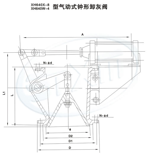XH640X-8型、XH640W-4型气动式钟形卸灰阀用气动装置通过机械执行机构驱动阀塞完成启闭动作。适用于自动控制和远距离操作的场合。XH640X-8型密封部位为橡胶软密封,本阀应用于冶炼高炉喷煤系统煤粉输送控制。XH640W-4型密封部位为阀体本体材料密封,本阀应用于除尘系统尘灰输送控制。以上两种型号钟型卸灰阀也适用于其他工业炉窖类似的系统使用。