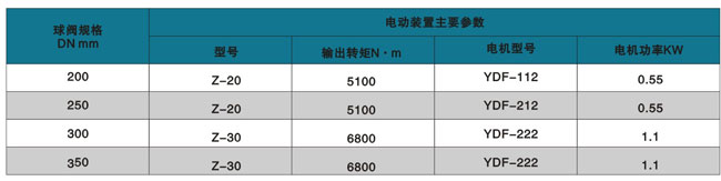 配用电动装置主要参数: