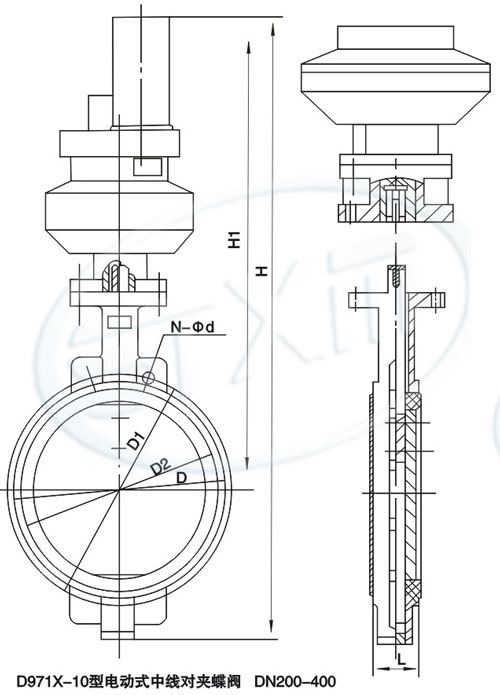 D971X-10型电动式中线对夹蝶阀采用电动装置驱动蝶板完成启闭动作。本阀可在现场通过电动装置上的指示器进行现场监控。也可通过阀门控制器进行远距离控制。还可将电信号输入计算机进行程序控制。本阀电动装置设有手-电切换装置,必要时可以手动操作。本阀可以任意位置安装,无方向性。