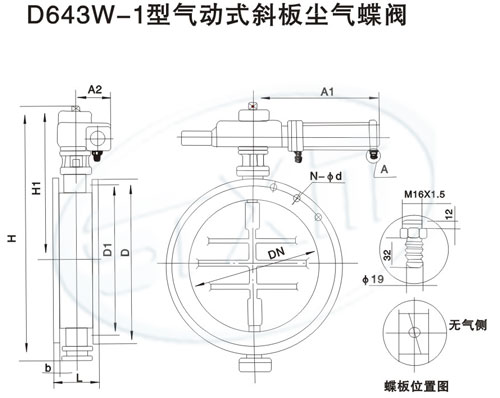 D643W-1型气动式尘气蝶阀利用气动装置通过机械执行机构驱动蝶报实现启闭。蝶板工作位置可通过行程开关进行信号显示。阀门启闭速度可用节流阀调节。本阀可以单台远距离控制,也可以远距离集中控制,还可以将信号输入电子计算机进行程序控制。本阀在非正常情况下,也可用扳手进行手动操作。本阀安装于水平管道时请参照图中所示确定安装方向。以防止尘灰堆积增加阀门开启阻力。