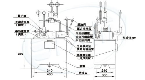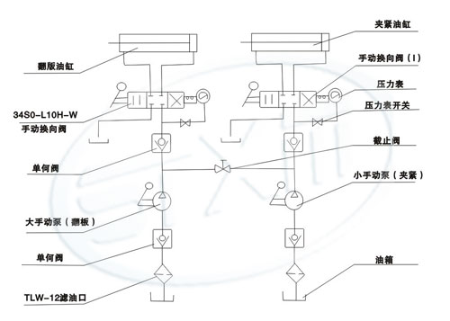 本厂生产的YYZ·S-10型手动液压站是与液动式扇形盲板阀配套使用的专用设备。由大手动泵、小手动泵和手动换向阀组成。大手动泵用来驱动翻转油缸,小手动泵用来驱动夹紧油缸。通过手动换向阀实现动作转换。利用阀体上设置的行程开关1XK、2XK、3XK、4XK和指示灯显示各步动作到位情况。详细步骤和操作方法见说明书。