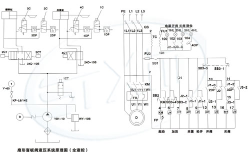 全液控液压系统原理图、全液控液压系统电器原理图: