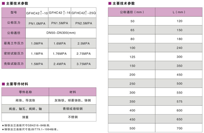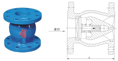 本厂生产的CFHC42X/T型静音止回阀由阀体、阀座、导流体、阀瓣、轴瓦及弹簧等零件组成,内部流道采用流线型设计,压力损失较小,阀瓣启闭行程很短,停泵时可快速关闭,防止巨大的水锤声,形成静音效果。